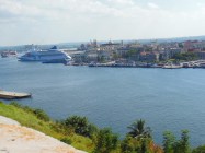 Cruise ship in Havana harbor. While anglos are eager to visit Cuba, they fear that mass tourism will destroy a beautiful and authentic culture. Cuidado!