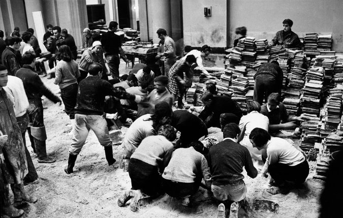 Early on the scene of the devastation were university students, including some 120 Americans, as well as residents, who pitched in to help retrieve hundreds of thousands of invaluable manuscripts soaked in mud. Nicknamed the Mud Angels, they were invited back this year to participate in the 50th anniversary commemoration.