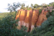 The ocher cliffs in Roussillon France (The Luberon) were the source of pigments used by artists like Rembrandt. The whole town is saturated with different ocher tones in the stucco walls. (Roberta Faul-Zeitler, CC 3.0)