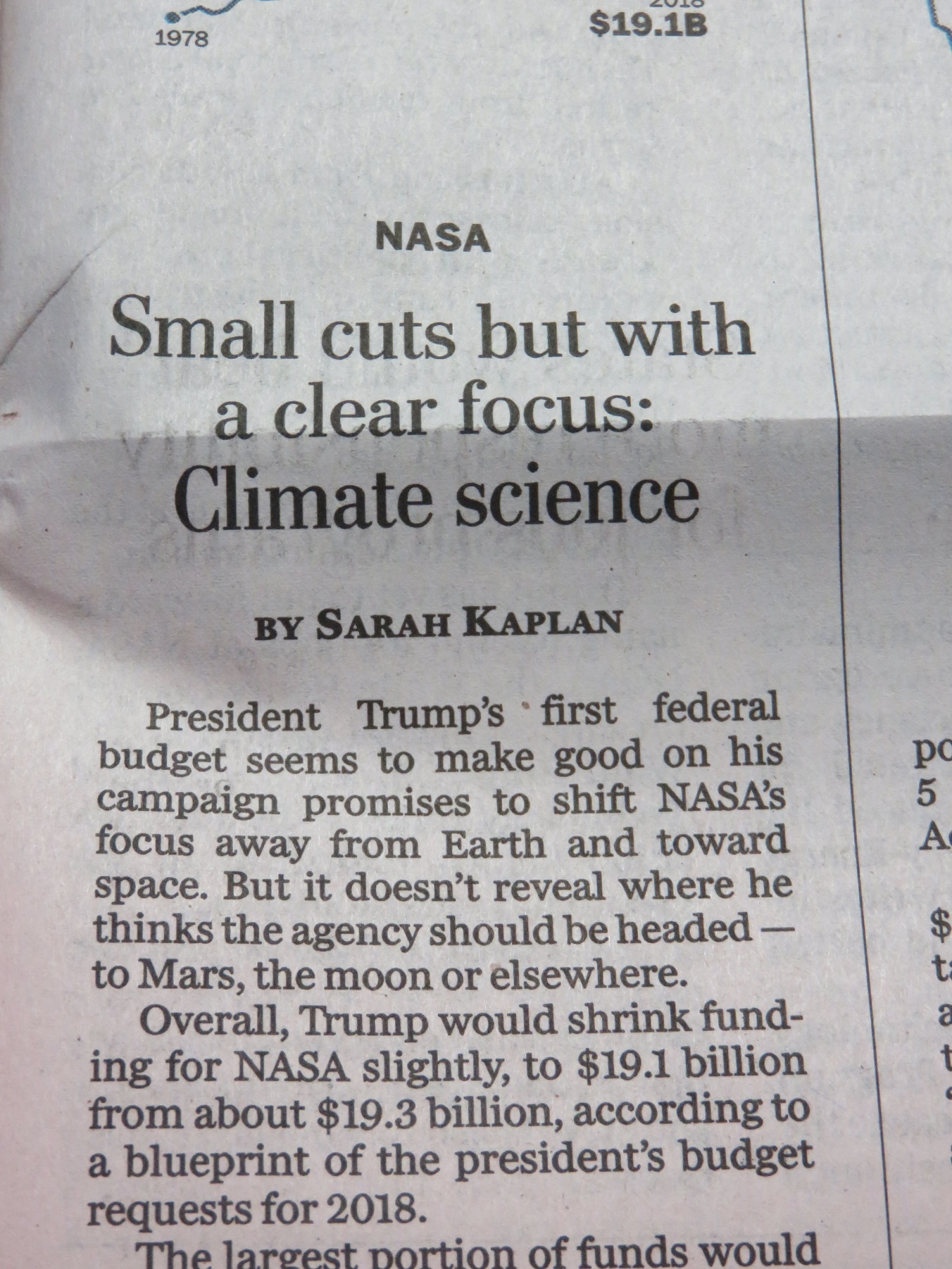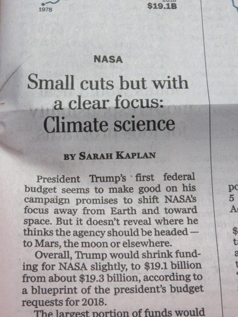 Funding for the arts, humanities, public broadcasting, climate change research, national parks, acquisition of public lands, and many social services are among the 50 programs that the Trump Administration intends to cut or defund completely in his proposed budget (Washington Post story, March 16 2017).