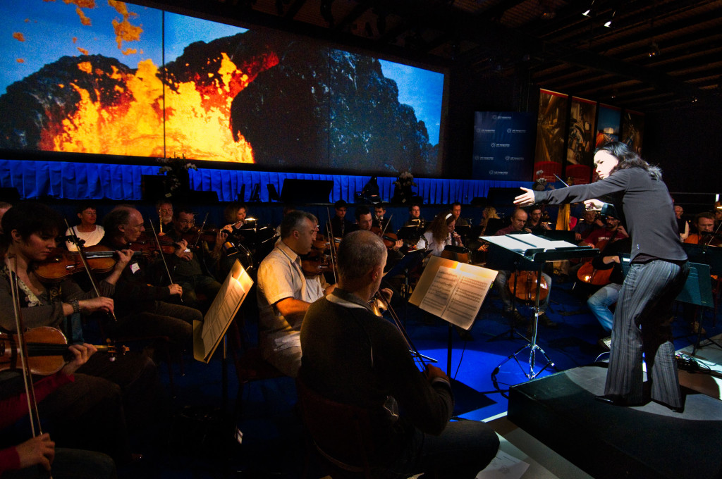 Carolyn Kuan conducts Origins, a symphonic work based on The LIFE project, in Geneva, Switzerland for the official start-up of the Large Hadron Collider (2008)