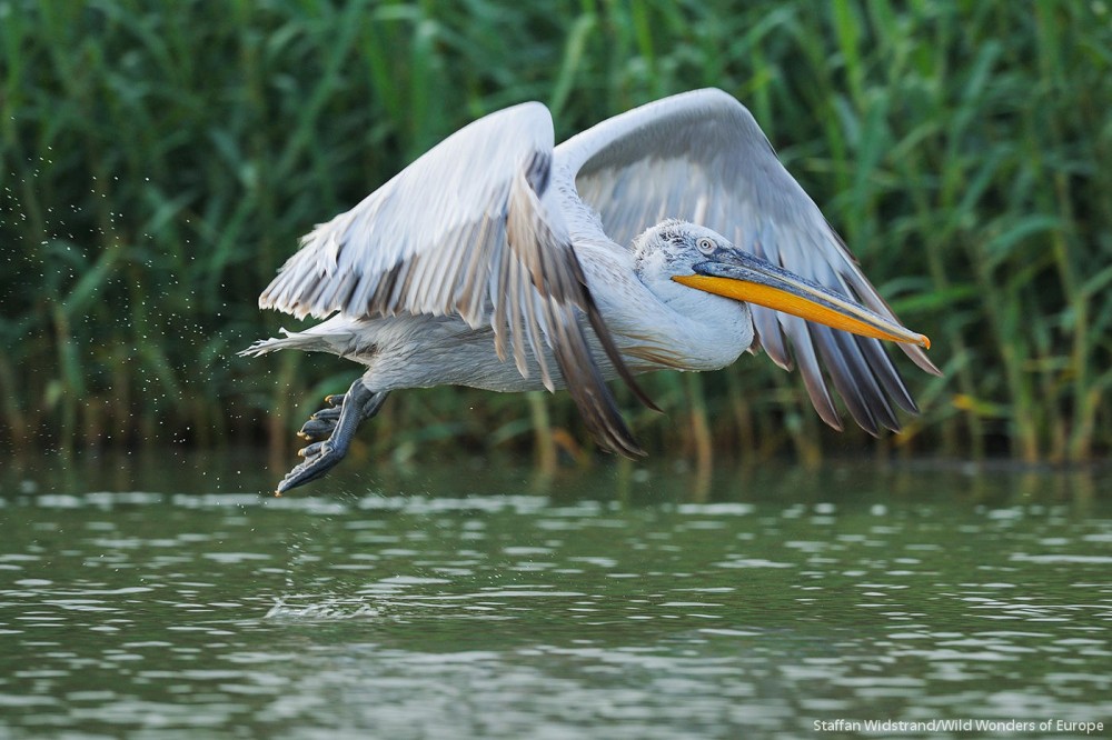 CLICK TO START SLIDE CAROUSEL: Dalmatian pelican, Pelecanus crispus, Danube delta rewilding area, Romania. Photo by Staffan Widstrand. Courtesy of Rewilding Europe. All rights reserved.